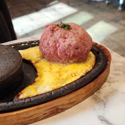 I came here for lunch one day during Dine L.A. to try it out. I had walked past it on several lunch breaks before but, since it was on the Dine L.A. list, I decided to give it a try. When I walked in, I got the best service! The owner seemed to be doing mostly everything himself which was greatly appreciated. He was very helpful in showing me how to do the "Tokyo Hamburg" and was great serving me and other tables. I ordered the Dine L.A. lunch which came out it's an appetizer, (I picked gyoza) main course (Tokyo Hamburg) and dessert (Japanese style cookies and cream ice cream)The Tokyo Hamburg was a hunk of fancy ground beef with onions on the side. There was also cabbage with a sauce on the side. I received my lesson on how to cook the meat and was good to go. I cooked the meat and onions on a very hot stone and enjoyed it with rice. The gyoza was tasty and perfectly crispy on the outside and savory on the inside. The dessert was the highlight for me. It was so delicious and creamy and had a hint of matcha flavor to it. If you're looking for a unique Japanese dining experience, Tokyo Hamburg is the place!